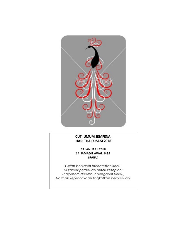 Kementerian pendidikan malaysia (kpm) telah mengeluarkan cuti sekolah yang diberi oleh kpm sempena perayaan. Persatuan peniaga peniaga uptown danau kota taman setapak indah kuala lumpur surat kepada. Cuti perayaan tahun baru cina 2018 bagi smk bandar putra adalah mulai 15 februari 2018 (khamis) hingga 20 februari 2018 (selasa). 15 februari 2018 (khamis) 19 februari 2018 (isnin) semua negeri terlibat For more information and source, see on this link :